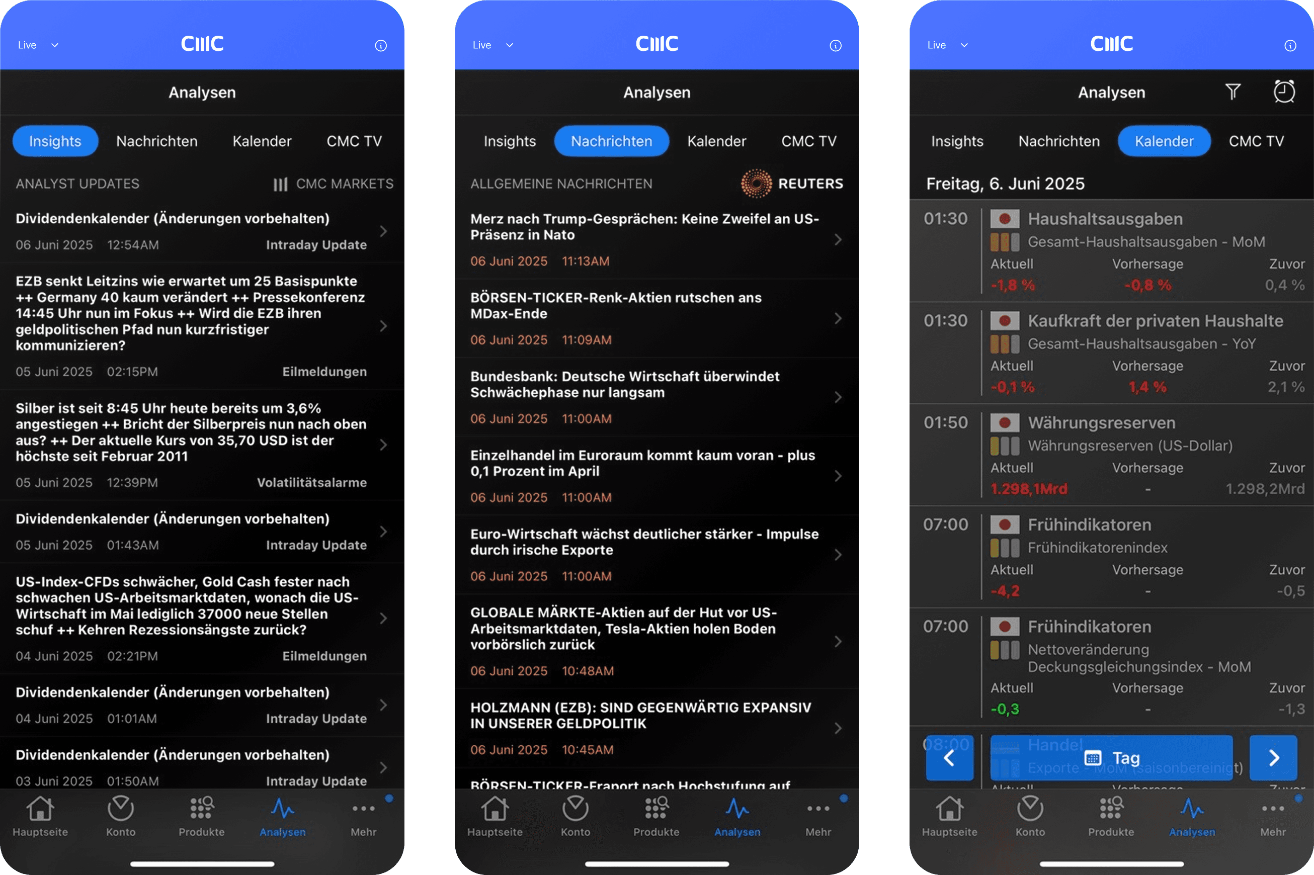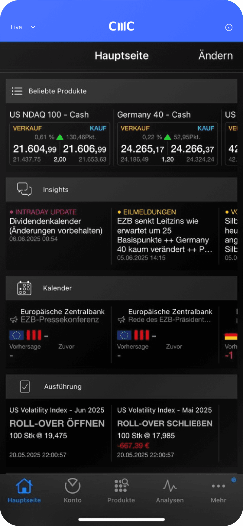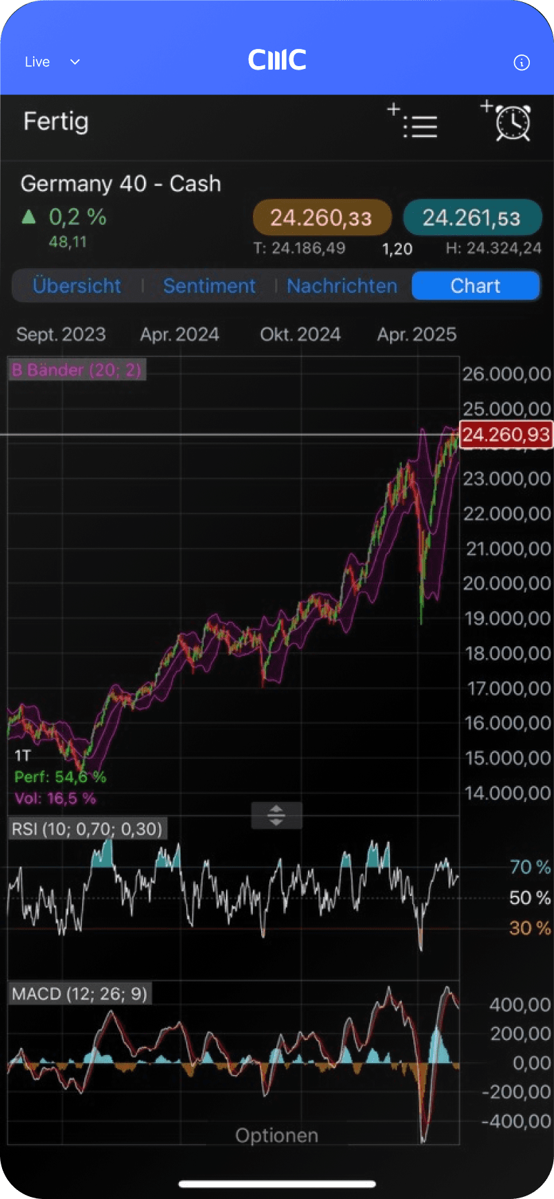 2 „Bester Finanzdienstleister" unter den CFD-Brokern laut Handelsblatt Kundenbefragung 2025; „Mobiles Traden: Top (Note 1,0)" und „Traders Liebling: Top (Note 1,0)" laut DKI Deutsches Kundeninstitut Umfrage „Bester CFD-Broker 2025"; „#1 Commissions & Fees" und „#1 Most Currency Pairs" laut ForexBrokers.com 2025 Annual Awards; einer von „Deutschlands besten Finanzdienstleistern" unter den CFD-Brokern laut Handelsblatt Kundenbefragung 2024; „Beste mobile Trading Plattform" laut ADVFN International Financial Awards 2024; „Beste professionelle hausinterne Analysten", „Bestes professionelles Trading-Konto für Performance-Tools" und „Beste professionelle Trading-Plattform für Trading-Signale und -Analysen" laut Professional Trader Awards 2023; „Bester Kundenservice", „Beste Risiko-Management-Tools" und „Bestes Charting" laut Deutschland CFD- und FX-Studie 2023 von Investment Trends.