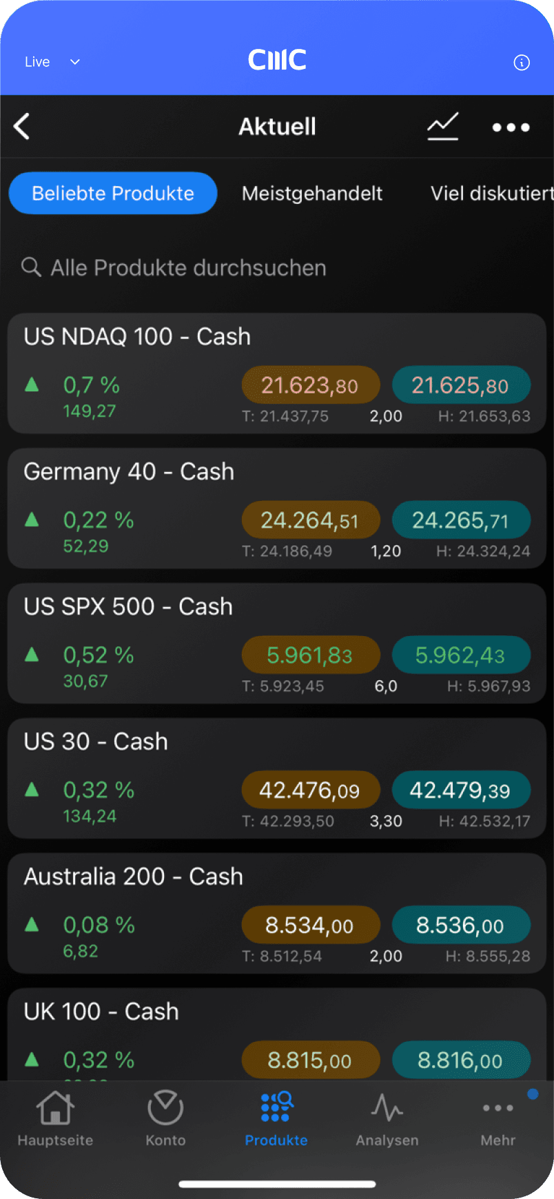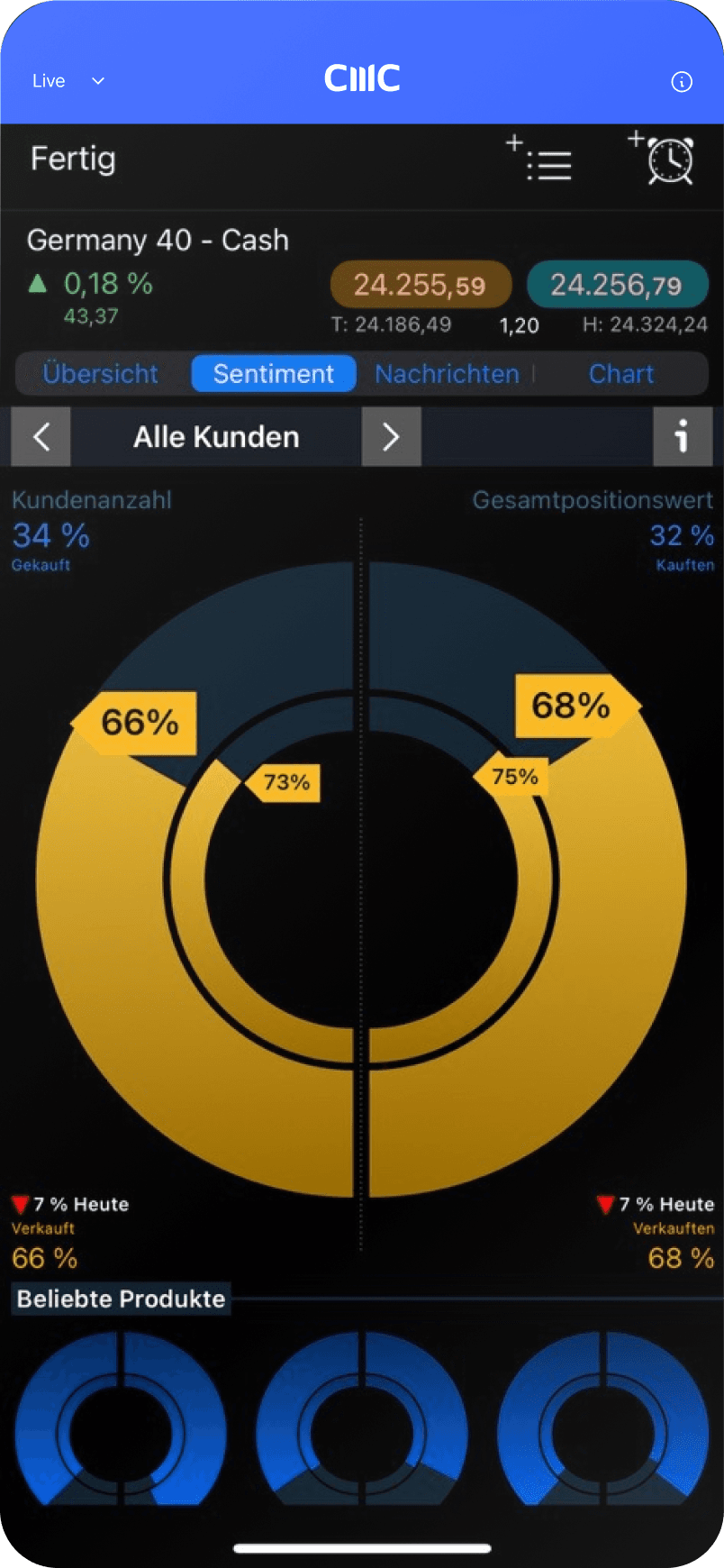 1 Die von CMC Markets zur Verfügung gestellten Kundenstimmungen dienen nur der allgemeinen Information, sind historischer Natur und stellen keine Handels- oder Anlageberatung dar - sie dürfen nicht die Grundlage für Ihre Handels- oder Anlageentscheidungen bilden.