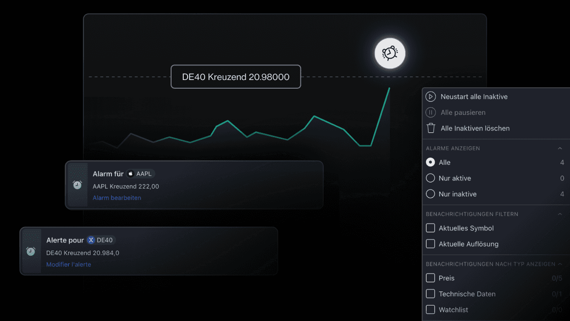 Konfigurieren Sie personalisierte Alarme mit 13 integrierten Kriterien auf der Grundlage von Preis und Volumen.