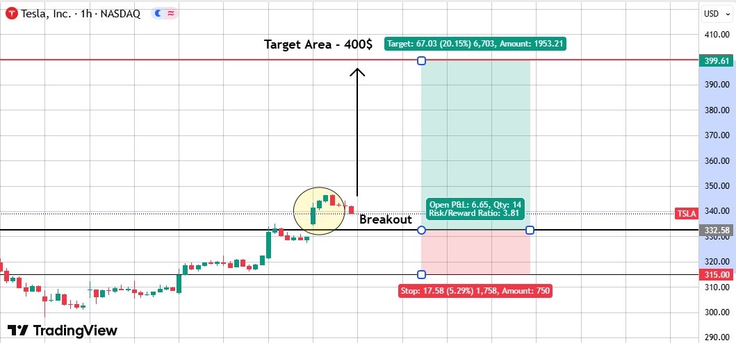A trader might also consider a wider stop-loss to allow for potentially larger gains if previous all-time highs are broken, but this would require broader analysis of macroeconomic factors and Tesla’s fundamentals.