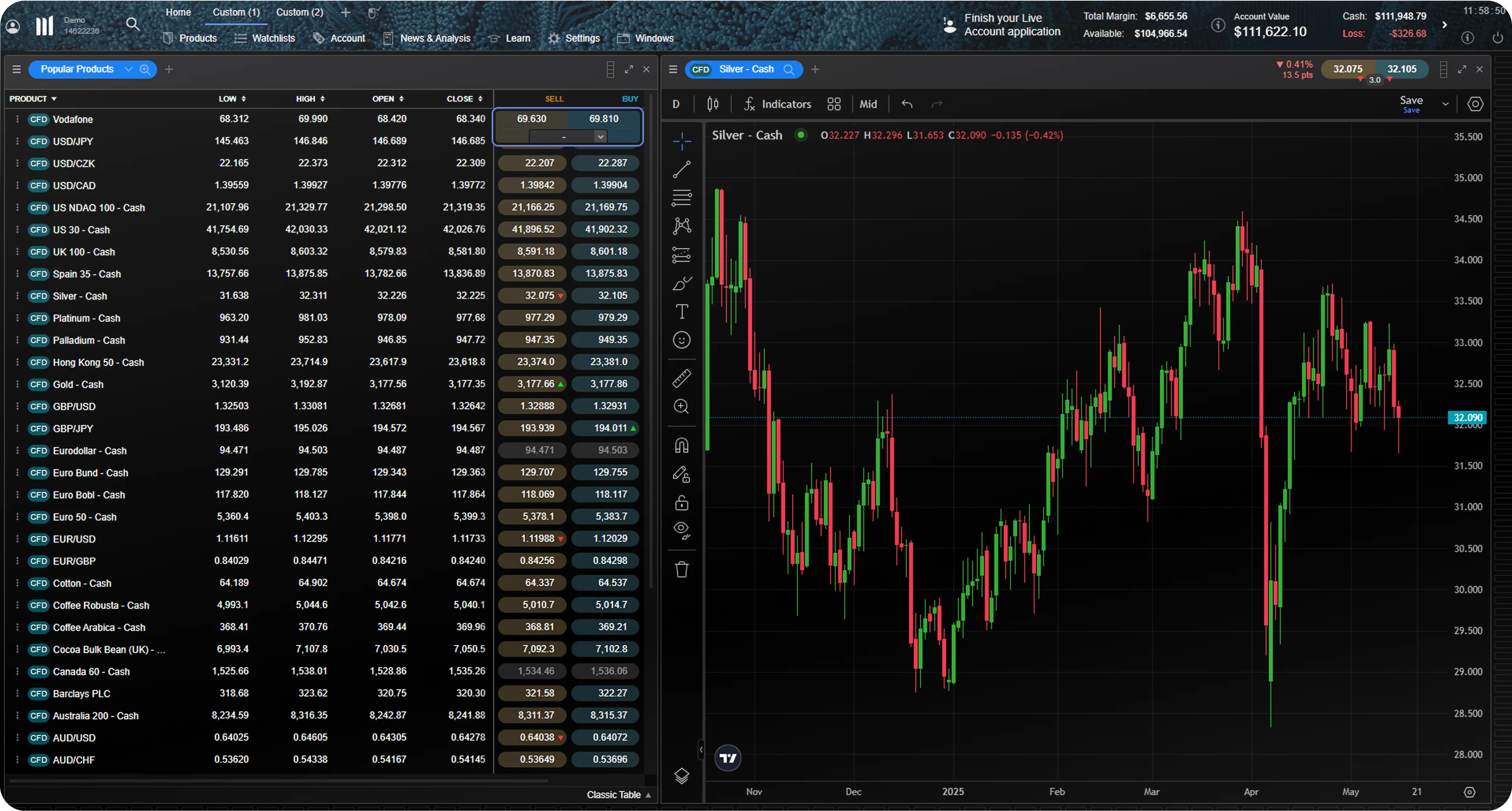 Keep your trading costs down with competitive spreads, commissions and low margins. View spreads on our most popular cash instruments below.