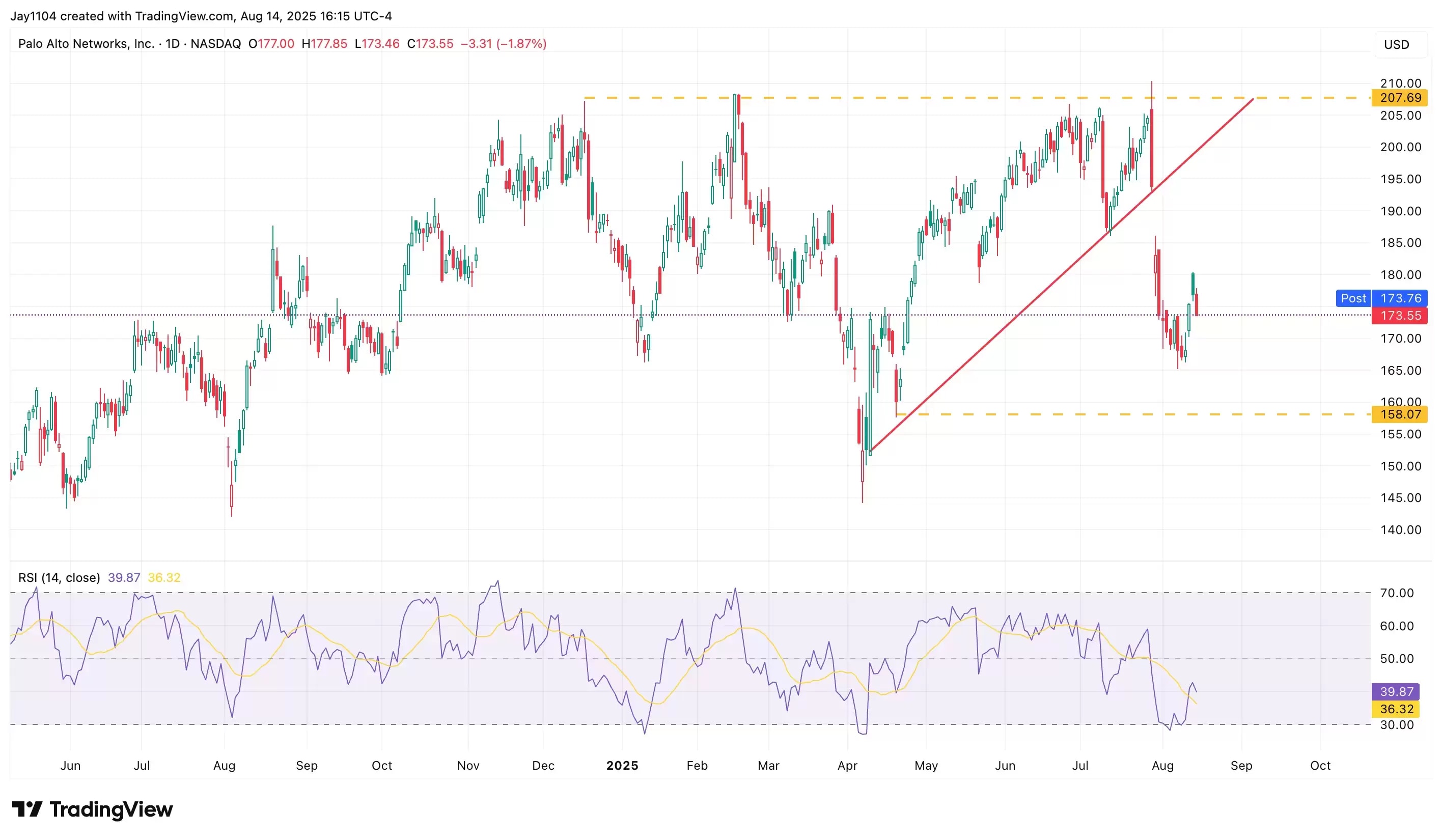 Palo Alto Networks share price, June 2024 - present