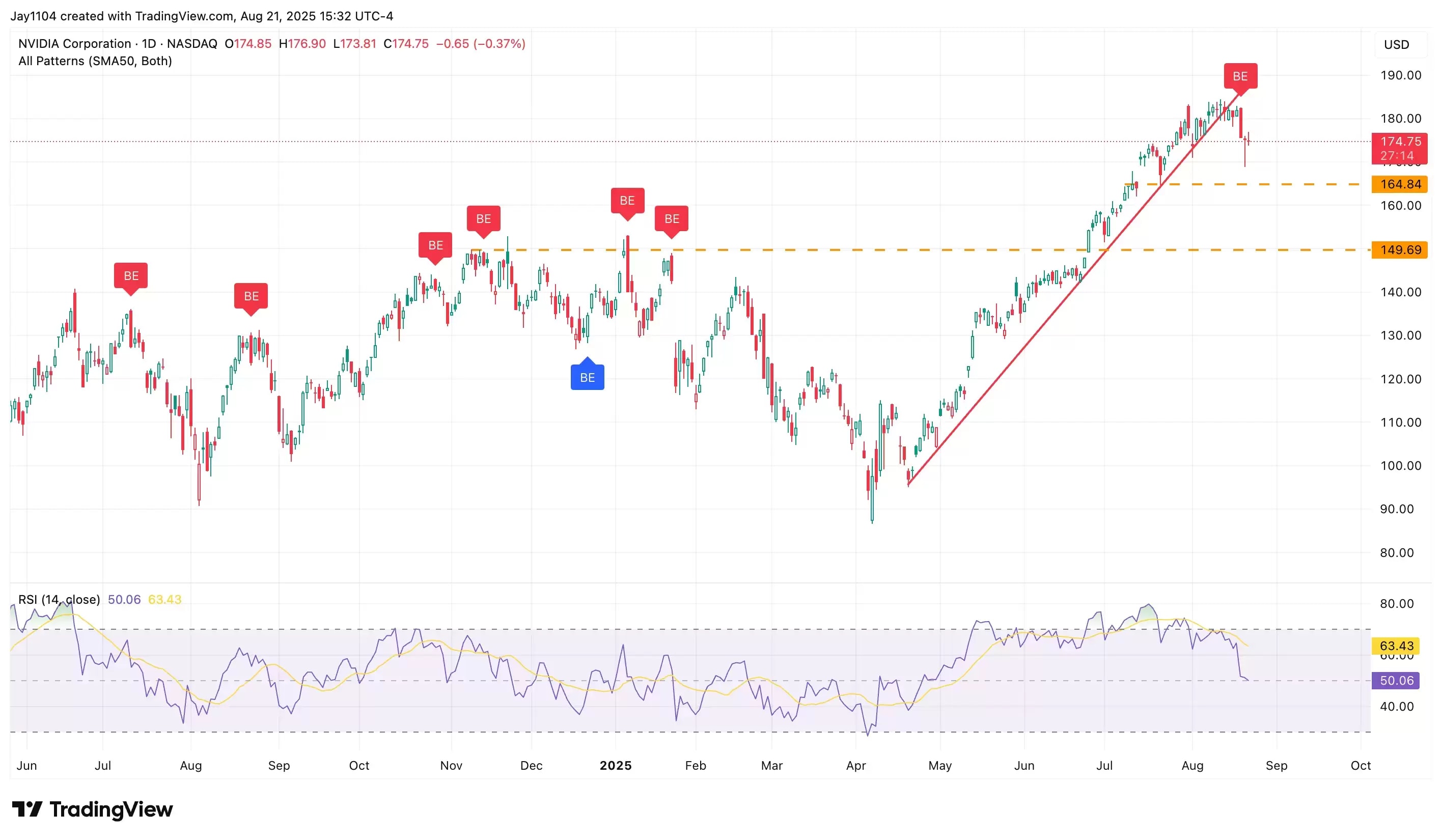 From a technical perspective, upside potential appears limited. The stock recently fell below an uptrend that had been in place since April, as the below chart highlights. In addition, a bearish engulfing candle has formed, which has historically been a negative signal for the stock. The relative strength index (RSI; the purple line on the lower panel of the chart) has also turned lower, suggesting that momentum has shifted from bullish to bearish. If the stock continues to decline as the technical patterns suggest, then $164 could be the first level of support to monitor, followed by stronger support near $150.