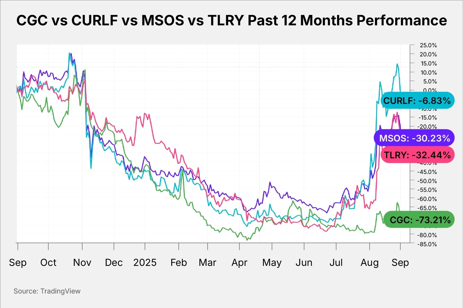 Canopy Growth has underperformed both Tilray and Curaleaf in 2025. CGC stock has endured a miserable year, with its Nasdaq-listed stock hitting an all-time low of $0.77 in April.