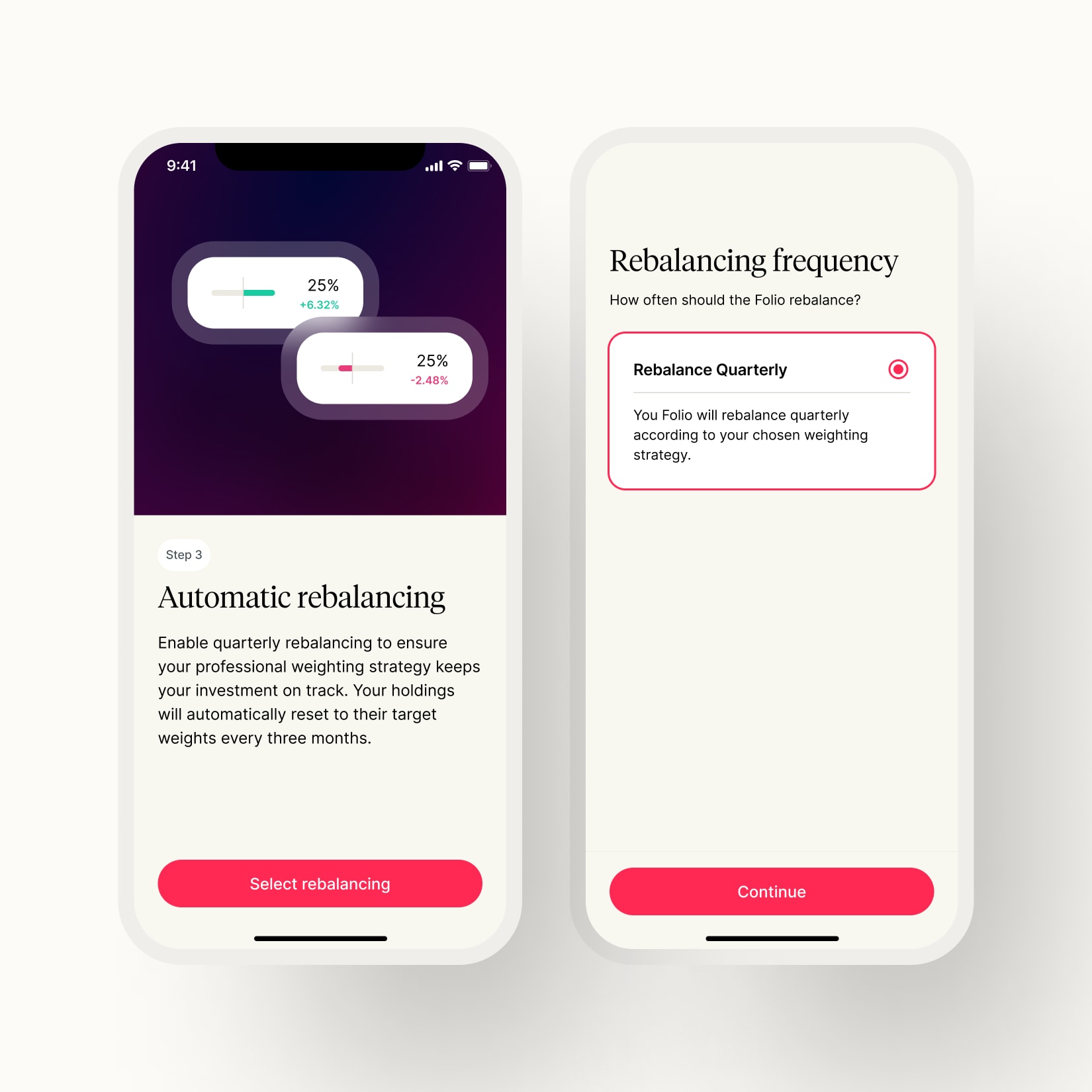Every three months, your Folio holdings will rebalance to their target weights, ensuring that your strategy remains on track.