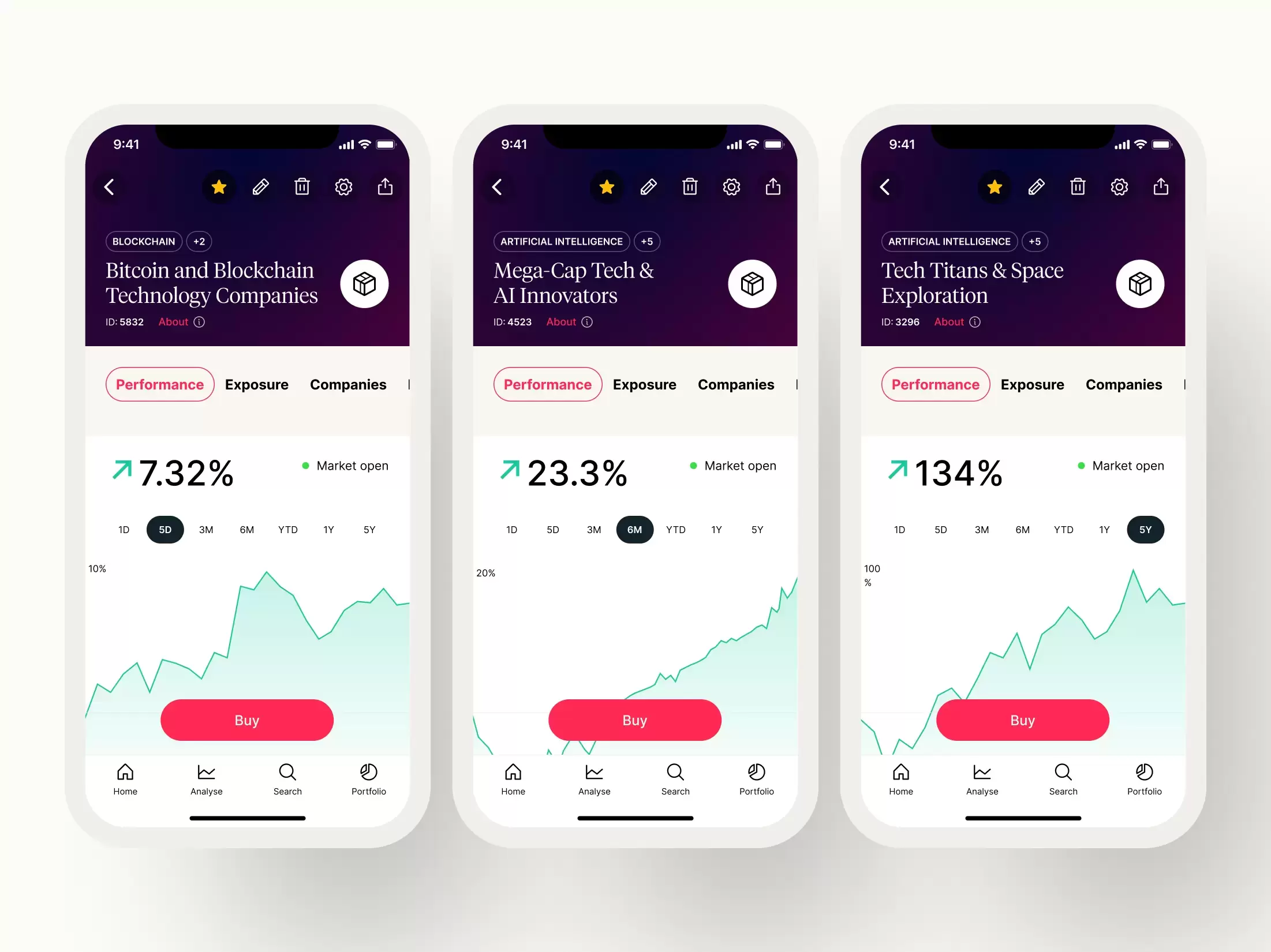 Finally, the thematic element of Folios means you can discover top stocks across 55 themes, from robotics to agtech and food innovation: cut the time it takes you to find interesting stocks and get straight to investing.