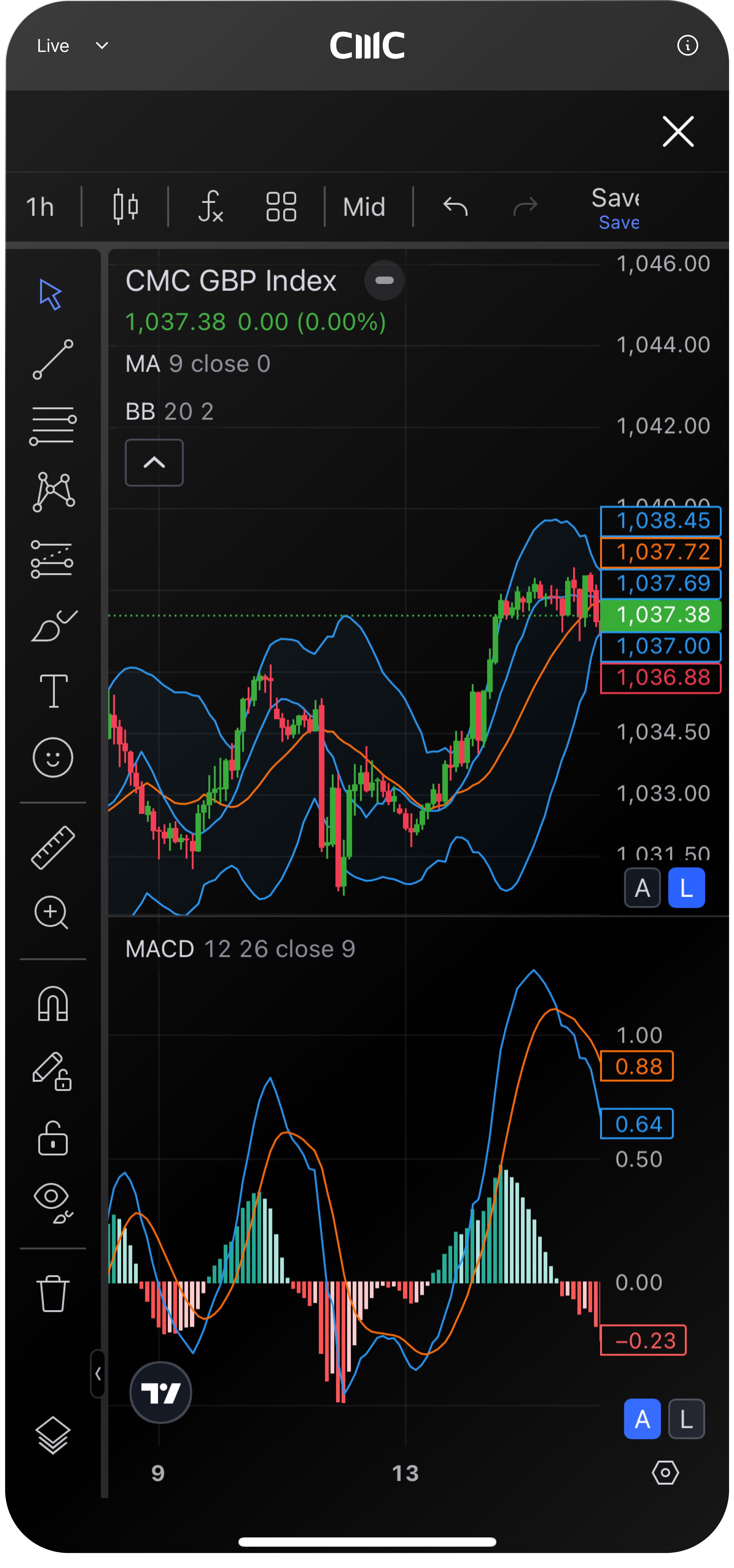TradingView is a trading research platform where you can view charts, analyse trends and interact with an online community. You can connect your TradingView account to your CMC Markets account, enabling you to open, manage and close trades within TradingView. Learn more about TradingView here.