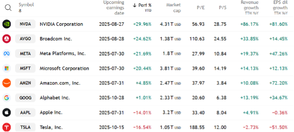 Selskapene har til sammen en markedsverdi på over 5,5 billioner USD, og utgjør omtrent 18,5% av Nasdaq 100 og nær 10% av S&P 500.