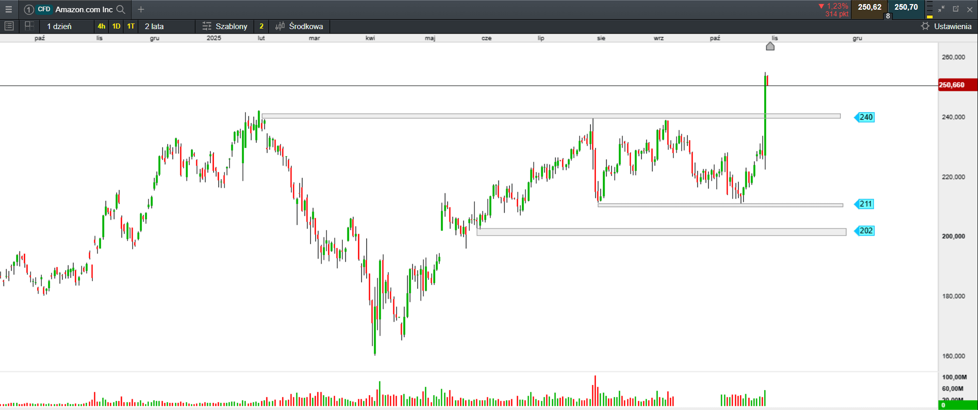 Wczoraj po sesji, raport innego giganta technologicznego - Apple - nie rozczarował inwestorów. Akcje wzrosły w handlu po sesji o 2,34%. Pomimo, że firma nie osiągnęła oczekiwanych wyników w segmencie iPhone'ów, to przyznała, że ma problemy z zaspokojeniem całego popytu. Za to perspektywy na kwartał świąteczny są imponujące. Segment usług, który odnotował 28,8 miliarda dolarów przychodów, co dało 15% wzrost i nowy rekord. Dyrektor finansowy Apple, Kevan Parekh, nie spodziewa się, aby firma odeszła od swojego „modelu hybrydowego” polegającego na korzystaniu zarówno z zasobów własnych, jak i zewnętrznych centrów danych, nawet przy jednoczesnym zwiększaniu wydatków kapitałowych. Firma zwiększyła wydatki na wsparcie rozwoju prywatnej infrastruktury obliczeniowej, ale Parekh uważa, że „ten hybrydowy model sprawdza się znakomicie i nadal będzie wykorzystywany”.