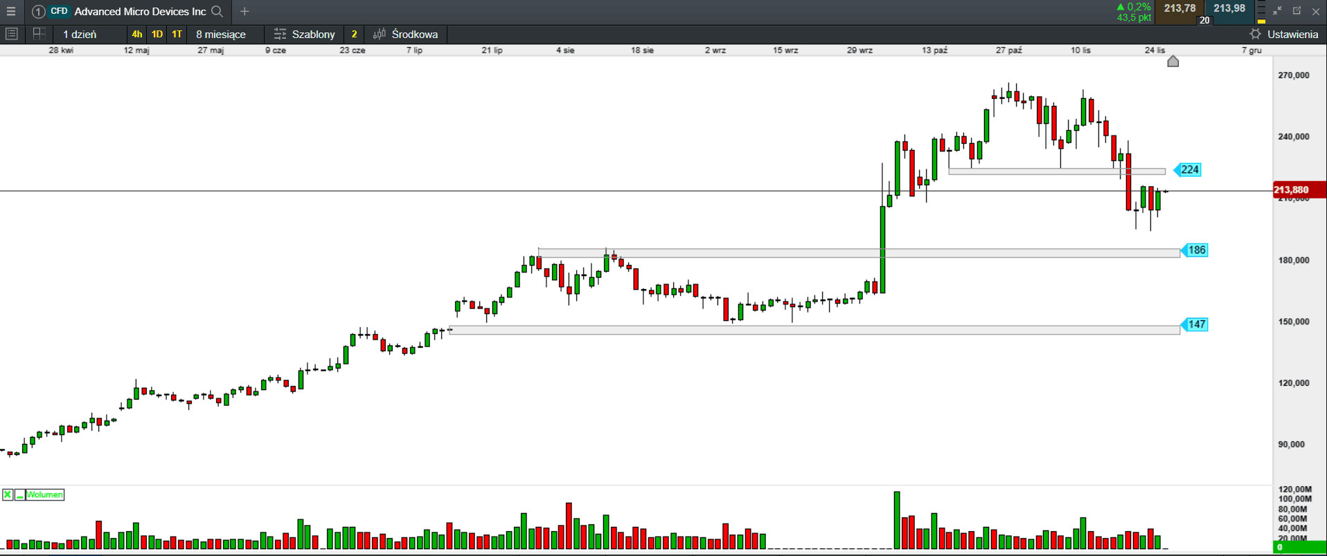 Akcje Advanced Micro Devices mogą po jednym z najlepszych miesięcy w historii wejść w jeden z najgorszych od ponad trzech lat. Akcje AMD spadły w listopadzie o prawie 23%, co oznacza najgorszy miesięczny wynik od września 2022 r.