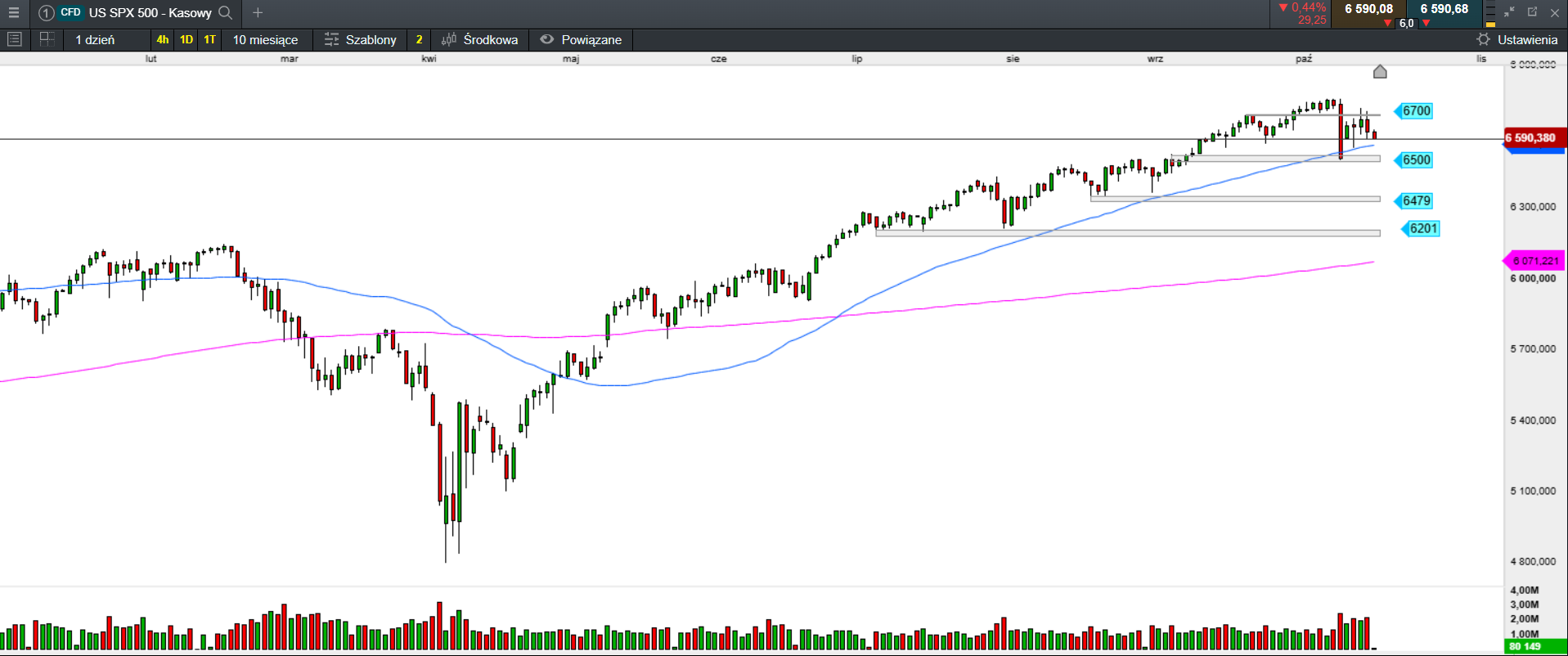 Na Wall Street przełom tygodnia przyniósł sporo zamieszania. Kluczowe dane nie są publikowane z powodu zamknięcia rządu. Inwestorzy nerwowo zareagowali na karne cła. które Trump zapowiedział na Chiny, po czym w weekend zmienił ton. To pozwoliło odrobić część piątkowych start. Jednak wczorajsza sesja ponownie pokazała obawy inwestorów. Dow Jones stracił 0,65%, S&P 500 spadł o 0,63%, a Nasdaq Composite stracił 0,47%.