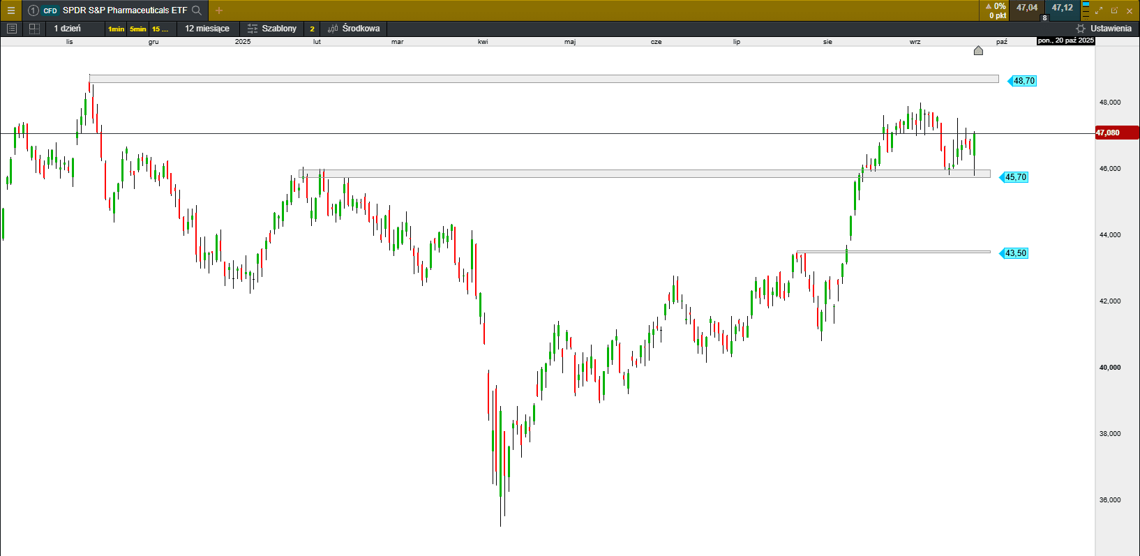 Akcje spółek farmaceutycznych zyskały w piątek, gdyż inwestorzy zignorowali, a nawet przyjęli z zadowoleniem wprowadzenie przez prezydenta Donalda Trumpa nowego planu taryfowego dla producentów leków. Trump poinformował w mediach społecznościowych, że od środy jego administracja zacznie nakładać 100-procentowe cła na wszystkie markowe lub opatentowane produkty farmaceutyczne, chyba że ich producent rozpoczyna budowę zakładu w USA lub jest w trakcie budowy. W efekcie, akcje spółek farmaceutycznych śledzone przez fundusz ETF VanEck Pharmaceutical, podobnie jak i innych funduszy ETF spółek farmaceutycznych zyskały. jednak jak zwykle diabeł tkwi w szczegółach.