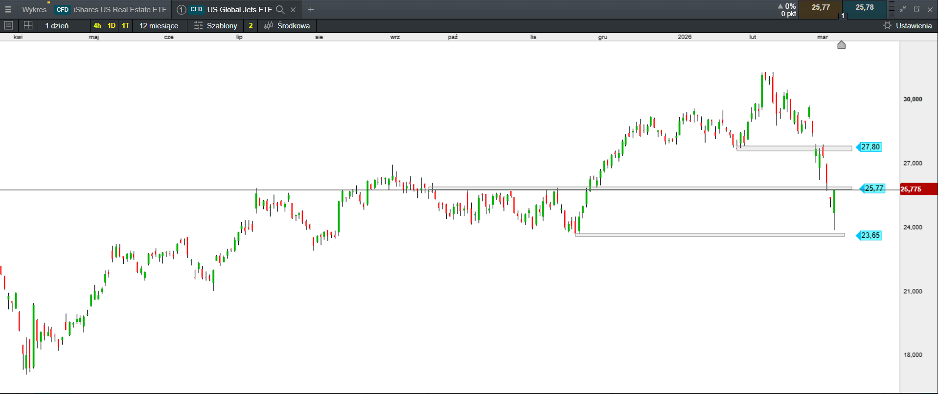 Obecna sytuacja na US GLOBAL JETS ETF sugeruje, że rynek wycenia trwałe pogorszenie fundamentów branży. Dopóki ceny energii nie ustabilizują się poniżej krytycznych poziomów, a amerykański konsument nie odzyska płynności finansowej, sektor lotniczy pozostanie zakładnikiem geopolityki. Inwestorzy coraz częściej dostrzegają, że stabilizacja w lotnictwie to mrzonka, a przewagę zyskają jedynie te podmioty, które dysponują potężną bazą kapitałową i są w stanie przetrwać okres ekstremalnie wysokich kosztów operacyjnych, co definitywnie stawia tanie linie w pozycji przegranej.