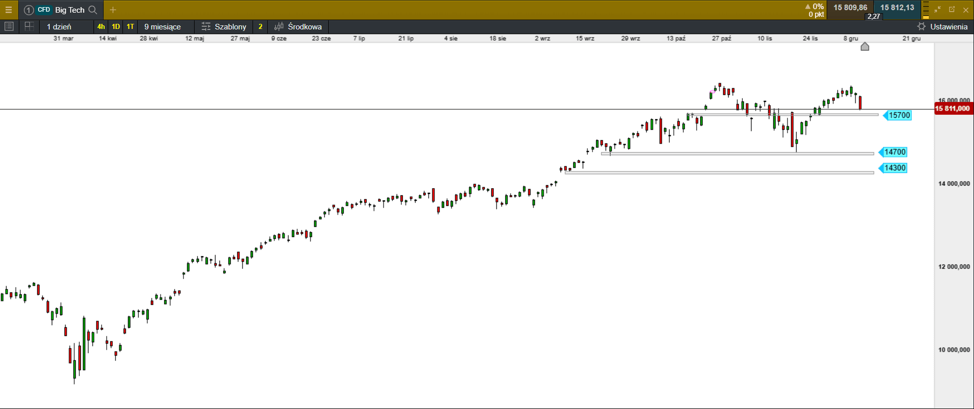 Na Wall Street kiedy w czwartek powiało optymizmem, co zaowocowało nowymi rekordami, piątek przyniósł wyprzedaż gorących papierów. Dow Jones stracił 0,51%, S&P500 spadł o 1,07%, a Nasdaq 100 finiszował ze stratą 1,69%, gdy spółki z sektora AI w większości traciły.