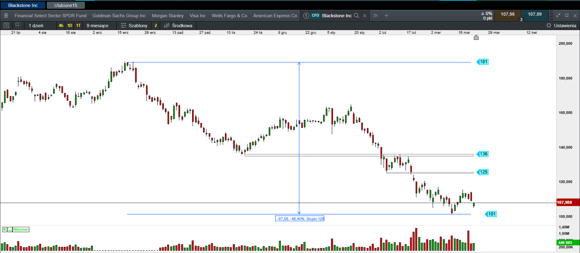 Również na Wall Street jest nerwowo. Wczorajsza sesja zakończyła się na minusie. Dow Jones stracił 0,18%, S&P 500 spadł o 0,37%, a Nasdaq 100 finiszował ze stratą 0,84%.
