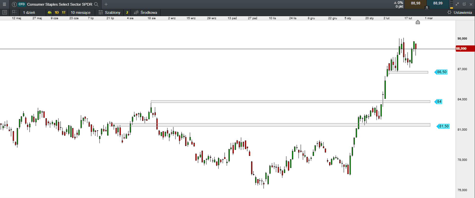 Fundusz State Street Consumer Staples Select Sector SPDR ETF, skupiający spółki z sektora dóbr konsumpcyjnych, odnotował od początku 2026 roku wzrost o ponad 15%, podczas gdy szeroki indeks S&P 500 pozostał niemal bez zmian. Skala tego zjawiska jest niepokojąca: wyceny gigantów takich jak Walmart czy Costco osiągnęły poziomy (wskaźnik P/E odpowiednio ok. 43 i 46), które znacznie przewyższają wskaźniki dla „Wspaniałej Siódemki”. Oznacza to, że za dolara zysku producenta chemii gospodarczej inwestorzy płacą dziś więcej niż za dolara zysku liderów innowacji.