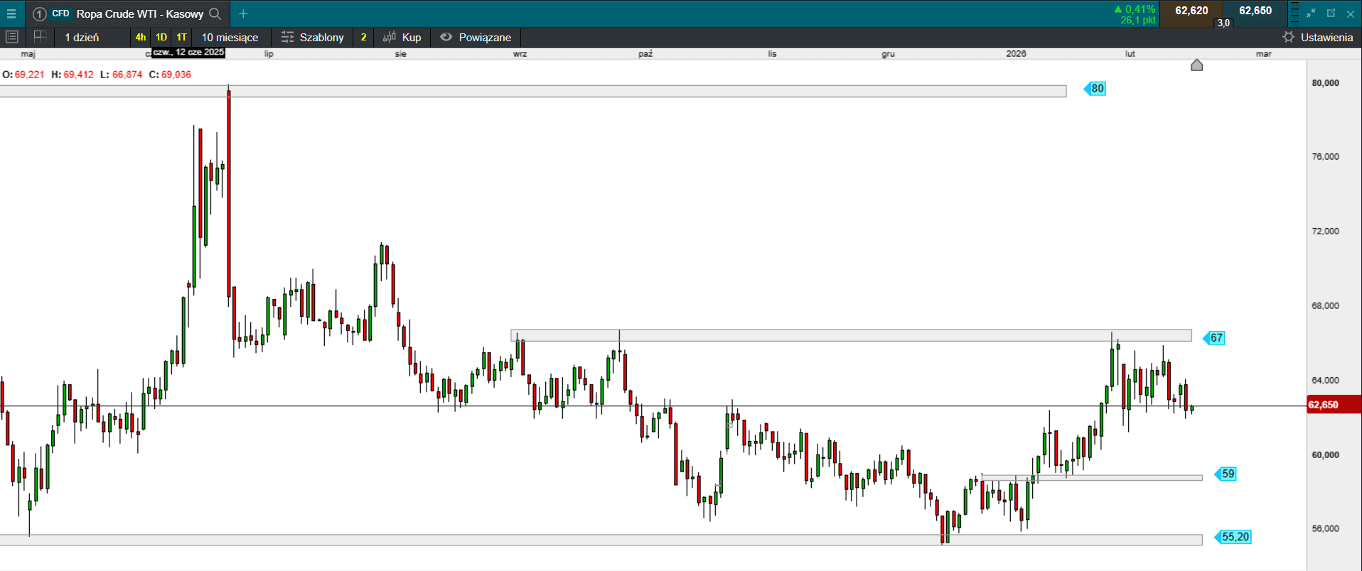 Ropa naftowa podrożała w tym roku o prawie 10% jako miks zdarzeń: zakłócenia w dostawach, ryzyka geopolitycznego i wzrostu zapasów objętych sankcjami. Chociaż przez większość miesiąca ceny kontraktów terminowych ustabilizowały się w przedziale 61–65 dolarów, wynik intensywnych działań dyplomatycznych w nadchodzących dniach i godzinach może zadecydować o dalszych losach cen.
