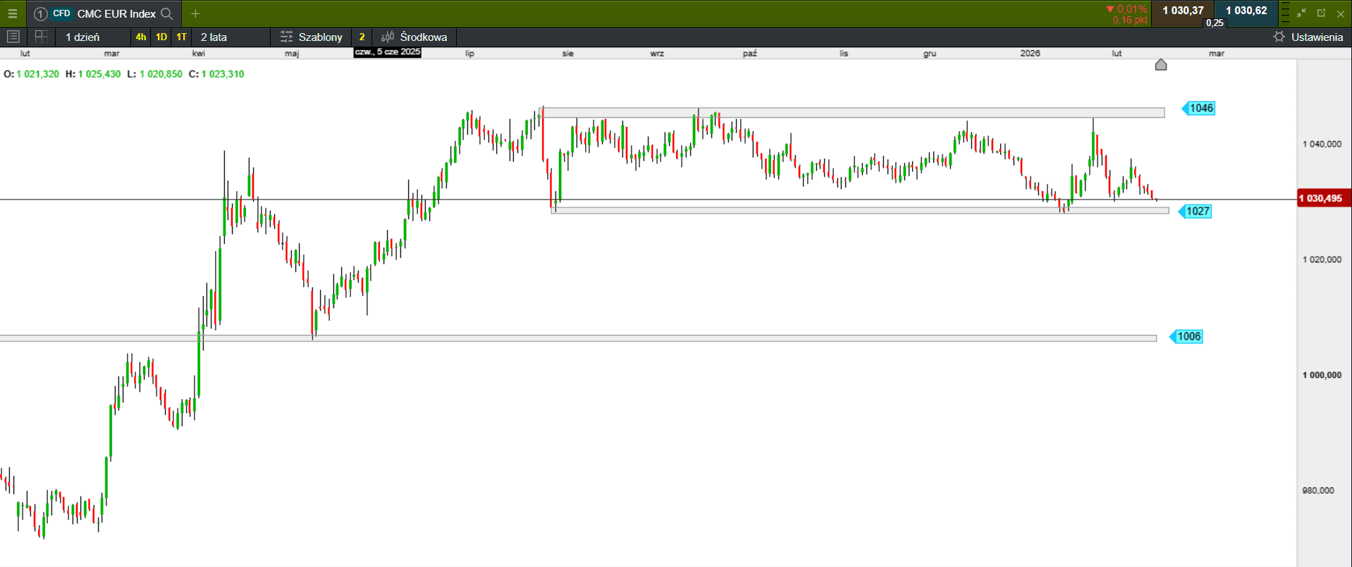 Jak to zwykle bywa, pod nieobecność inwestorów z USA niewiele się dzieje. Ostatnio na parkiecie przy Książęcej zrobiło się nerwowo. Już wcześniejsze sesje pokazały, że sytuacja na GPW jest mocno dynamiczna i pojawiają się pierwsze oznaki możliwej krótkiej korekty. Popyt, który dyktował warunki gry, stał się bardziej wybiórczy. Przez kilka dni na WIG20 trwała przepychanka, chociaż indeks wciąż radzi sobie bardzo dobrze, co było pokłosiem reakcji na decyzję Trumpa o odwołaniu karnych ceł na część krajów Europy. Niestety pogorszenie nastrojów na głównych parkietach Europy i na Wall Street zrobiło swoje. Obóz niedźwiedzi, który twierdził, że optymizm na GPW po cichu wyparowuje, może mieć rację, a realizacja zysków z długich pozycji dodatkowo może sprzyjać cofnięciu. Zatem należy być ostrożnym. Nasz parkiet nie jest oderwany od reszty świata i jeśli na globalnych parkietach pojawi się sceptycyzm, należy liczyć się z korektą, tym bardziej po tak dynamicznym wzroście. Jednak dopiero trwały spadek poniżej minimum z 29 grudnia 2025 stanowi zagrożenie dla wzrostów i może spowodować większe cofnięcia w stronę poziomu 2378 pkt. Wczoraj po neutralnym otwarciu, przez cały dzień WIG20 snuł się wokół poziomu odniesienia i ostatecznie WIG20 finiszował w okolicach środka dziennego zakresu wahań.