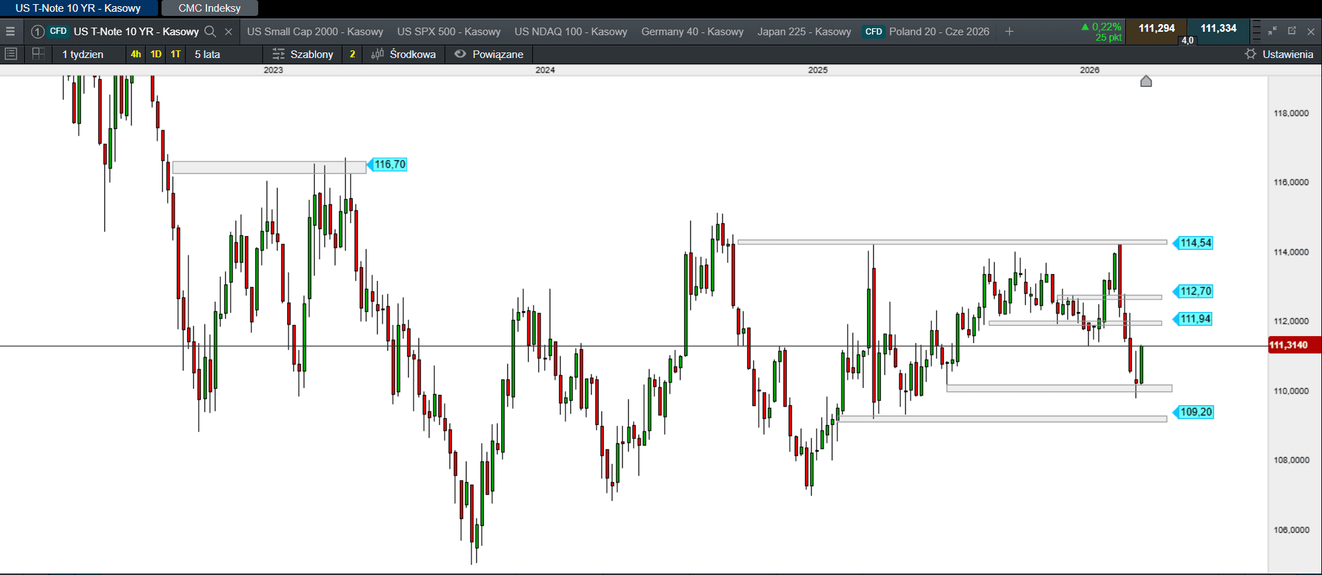Ostatnia sesją miesiąca zakończyła się z przytupem, jednak marzec zakończył się w czerwieni. Czy kwiecień odwróci niekorzystną dla byków tendencję? Nasz parkiet podąża za głównymi giełdami globu. Sytuacja globalnie na rynku ryzykownych aktywów jest mocno napięta. “Strach” rozlał się nie tylko w Warszawie, ale i na całym globie. Kiedy na rynkach leje się krew, to Emerging Markets znajdują się pod presją sprzedających. Rosnące rentowności obligacji USA potęgowały niepokój o wzrost inflacji, co w konsekwencji może prowadzić do wzrostu stóp procentowych w dalszej części roku, a to z kolei do wyższych kosztów finansowania działalności. Nastroje w ciągu kilku tygodni odwróciły się o 180 stopni. Na parkiecie przy Książęcej sytuacja jest mocno dynamiczna i pojawiły się oznaki korekty. Popyt, który dyktował warunki gry, ustąpił naporowi podaży. Niestety pogorszenie nastrojów na głównych parkietach Europy i na Wall Street zrobiło swoje. Obóz niedźwiedzi, który twierdził, że optymizm na GPW po cichu wyparowuje, wydaje się mieć rację, a realizacja zysków z długich pozycji dodatkowo może sprzyjać cofnięciu. Nasz parkiet nie jest oderwany od reszty świata i jeśli na globalnych parkietach utrzyma się sceptycyzm, należy liczyć się z korektą, tym bardziej po tak dynamicznym wzroście. Jednak dopiero trwały spadek poniżej minimum z 4 grudnia 2025 stanowi poważne zagrożenie i może spowodować większe cofnięcia w stronę poziomu 2378 pkt. WIG20, po wysokim otwarciu, od razu skierował się na północ i ostatecznie zakończył dzień w okolicach maksimum dziennego zakresu wahań.