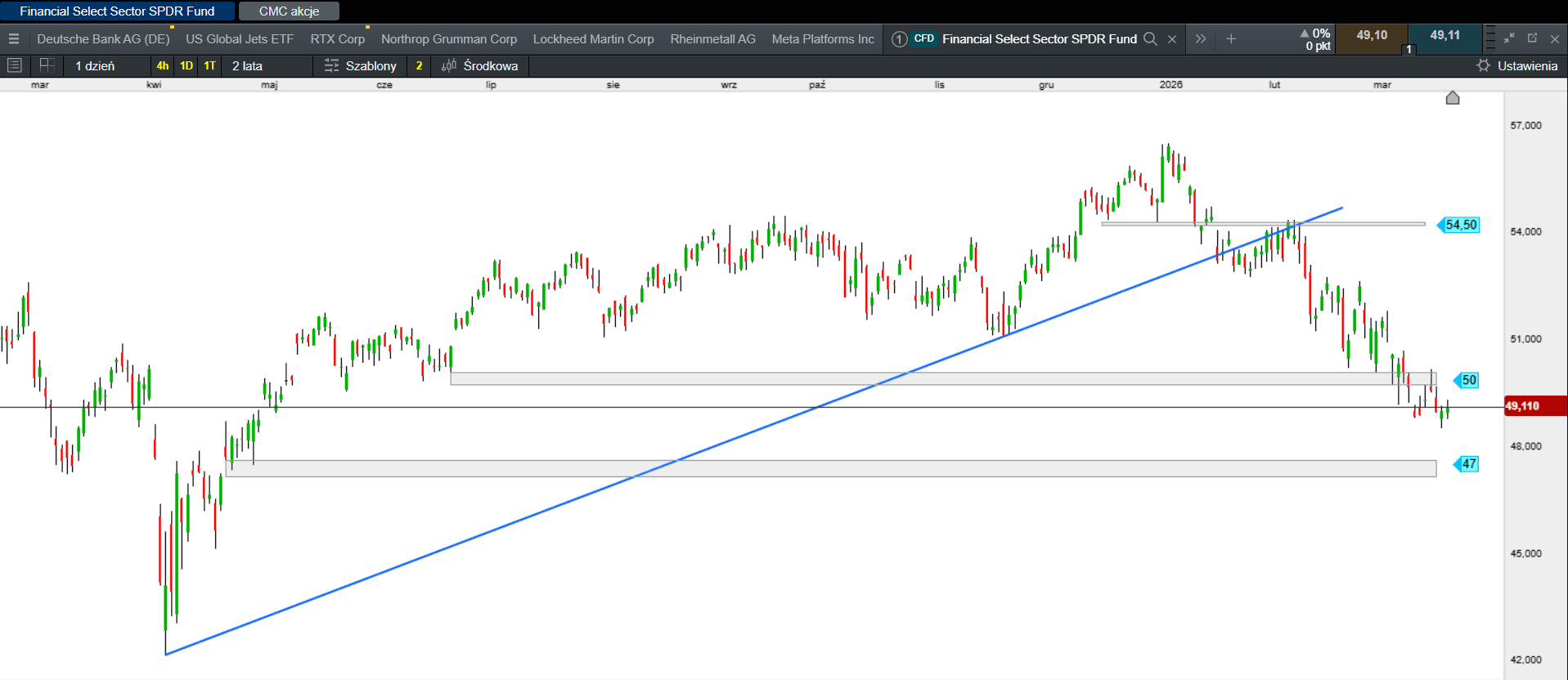 Na rynku pojawiły się niepokojące sygnały techniczne płynące z sektora finansowego, które mogą zwiastować szerszą korektę na giełdzie. Głównym powodem do obaw jest fakt, że sektor finansowy, reprezentowany m.in. przez fundusz State Street Financial Select Sector ETF, zaczął wykazywać słabość, tracąc znacząco na wartości w porównaniu do swoich historycznych szczytów z początku 2026 roku. Choć w ostatnich trzech latach korelacja między branżą finansową a indeksem S&P 500 była niezwykle wysoka, obecnie drogi te zaczynają się rozchodzić, co analitycy interpretują jako sygnał ostrzegawczy dla całego rynku. Sektor finansowy jest drugą najważniejszą grupą w indeksie S&P 500, więc jego problemy techniczne są trudne do zignorowania przez inwestorów szerokiego rynku.